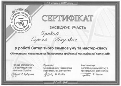 • 2013 г. — специализация по УЗИ на базе Харьковской медицинской академии последипломного образования на кафедре генетики, акушерства, гинекологии и медицины плода.