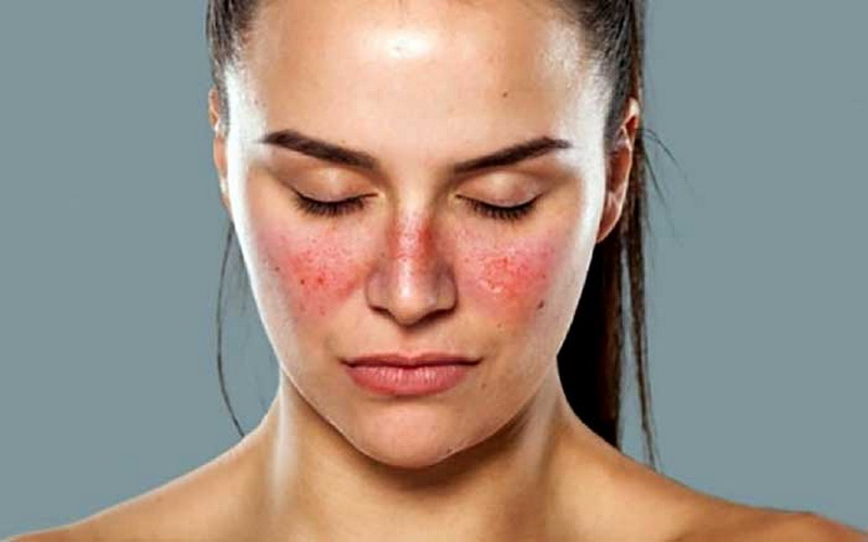 - высыпания на лице в форме бабочки в зоне переносицы и щек;