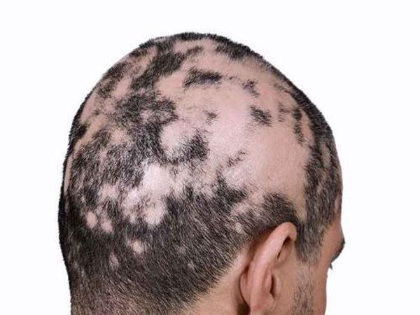 Гнездная алопеция обычно поражает волосистую часть головы, однако встречаются и поражения бороды, бровей, ресниц. Начальные очаги облысения небольшие, кожа не измененная, но в некоторых случаях наблюдается ее покраснение. Зачастую гнездная алопеция развивается у молодых людей.