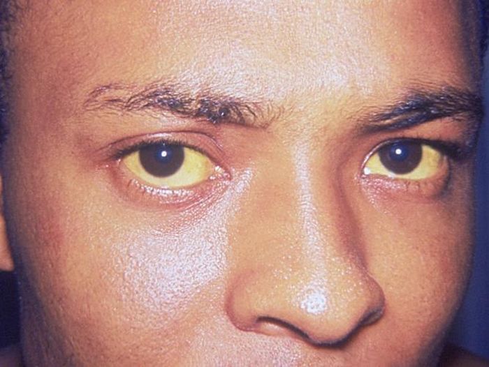 Начало желтой лихорадки всегда острое и сопровождается повышением температуры тела до 40 градусов. Человек ощущает озноб, боль в мышцах и суставах, наблюдается рвота с кровяными прожилками, покраснение кожи лица, пожелтение склер, бессонница, понижение артериального давления, посинение кожи, кровоточивость десен. В период ремиссии состояние ненадолго нормализуется, спадает температура, отечность. Но уже через несколько часов происходит нарастание симптомов с новой силой, развивается желтуха, кровавая рвота, брадикардия, падение артериального давления.